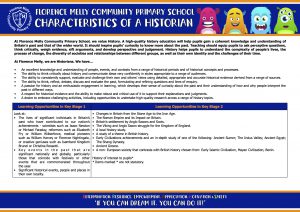 History subject specific characteristics, which we expect the children to demonstrate, have been developed and shared with all stakeholders. These characteristics underpin all work in history and form a focal point for display areas and provide a common subject specific vocabulary for staff and pupils.