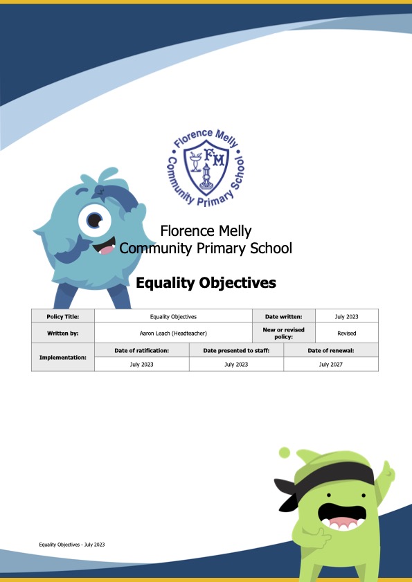 At Florence Melly Community Primary School, we are committed to promoting equality of opportunity, eliminating discrimination and harassment, valuing diversity and promoting positive relationships. We provide an inclusive education which enables all pupils to develop their full potential meeting the requirements of the Equality Act 2010.