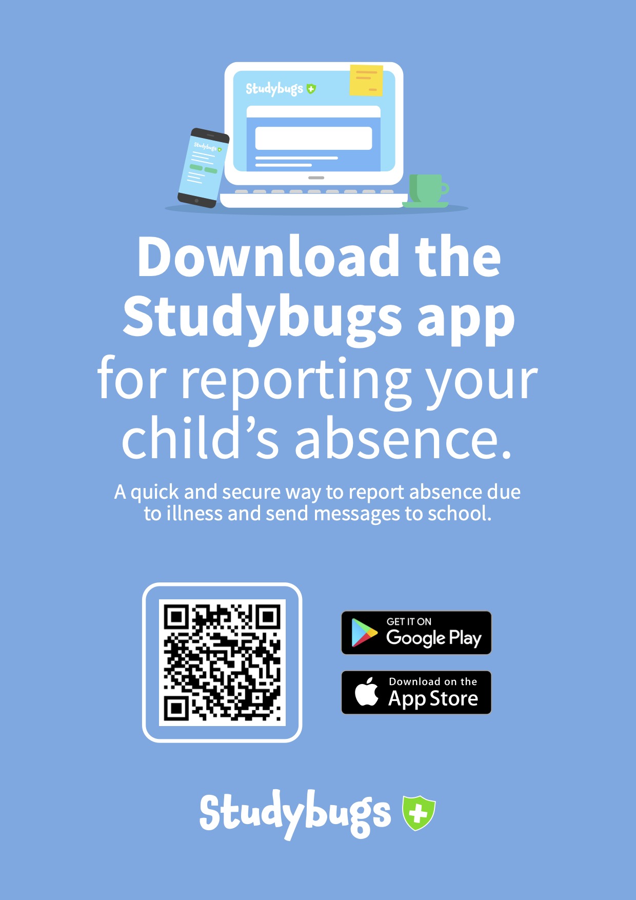 We’re pleased to announce that our school is introducing a new, more efficient and secure system for reporting your child’s absence due to illness, called Studybugs. If you haven’t already, please get the free Studybugs app, or register on the Studybugs website, and use it to tell us whenever your child’s ill and unable to attend school.