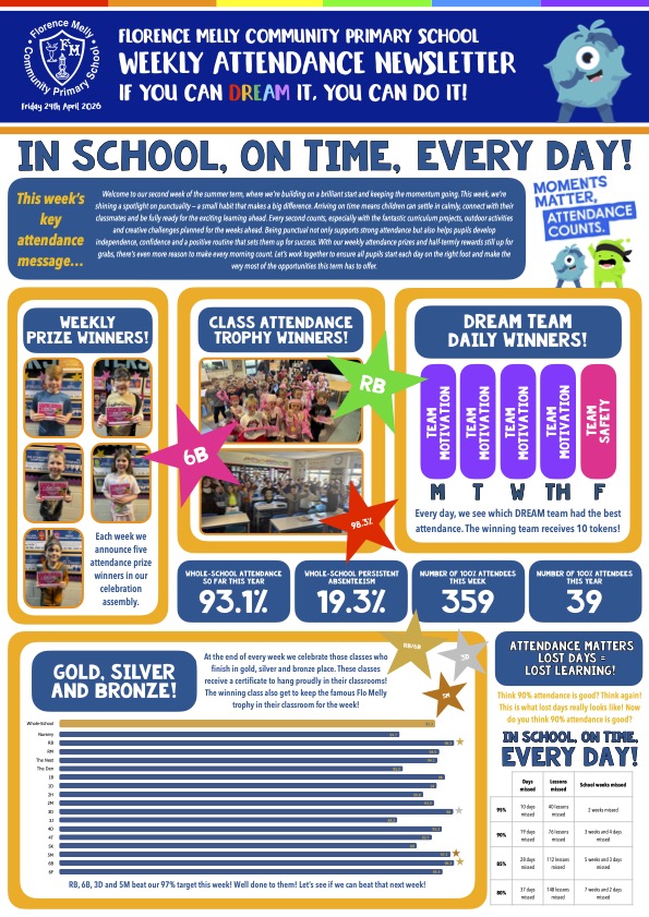 Check out this week’s attendance newsletter – packed with all things attendance related at Flo Melly. Meet our weekly prize winners, DREAM Team daily winners and class certificate winners! Enjoy…